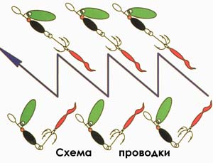 Скорость проводки для каждой блесны определяется визуально у прибрежной зоны, когда рыболов может наблюдать игру блесны при ее проводке.