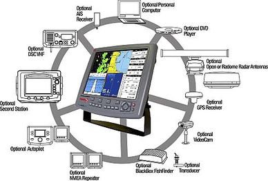 Каждый картплоттер содержит набор информационных данных, объем и содержание которого может быть различным в разных моделях. Часть информационной базы вводится при производстве приборов, а основная часть поступает вместе с электронной картой района.