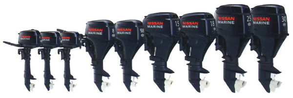 • Четырехтактные моторы Nissan Marine. Японские подвесные лодочные моторы Nissan Marine зарекомендовали себя простотой конструкции, а соответственно и высокой надежностью. Эти лодочные моторы пользуются спросом во всем мире. Система охлаждения лодочных моторов оснащена помпой из нержавеющей стали, «рубашка» системы охлаждения двигателя оцинкована - что позволяет смело эксплуатировать лодочные моторы Nissan Marine на мелководье и на водоемах с большим содержанием песка и ила. Линейка четырехтактных лодочных моторов включает в себя двигатели от 4 до 30 лошадиных сил.