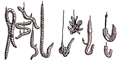 - Если червь легко рвётся, то необходимо наживлять его наиболее прочным способом.