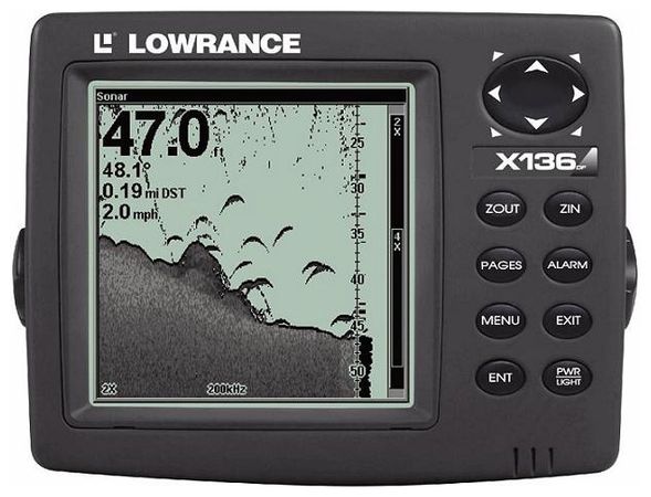 Эхолот Lowrance X136 DF - двухлучевой эхолот с сверхчетким 480x480 пикселей дисплеем с отображением 16-ти оттенков серого и превосходными функциями поиска рыбы - включая температуру! Отличается от модели Lowrance X135 большей площадью охвата лучей, а также наличием датчика скорости в комплекте с прибором.